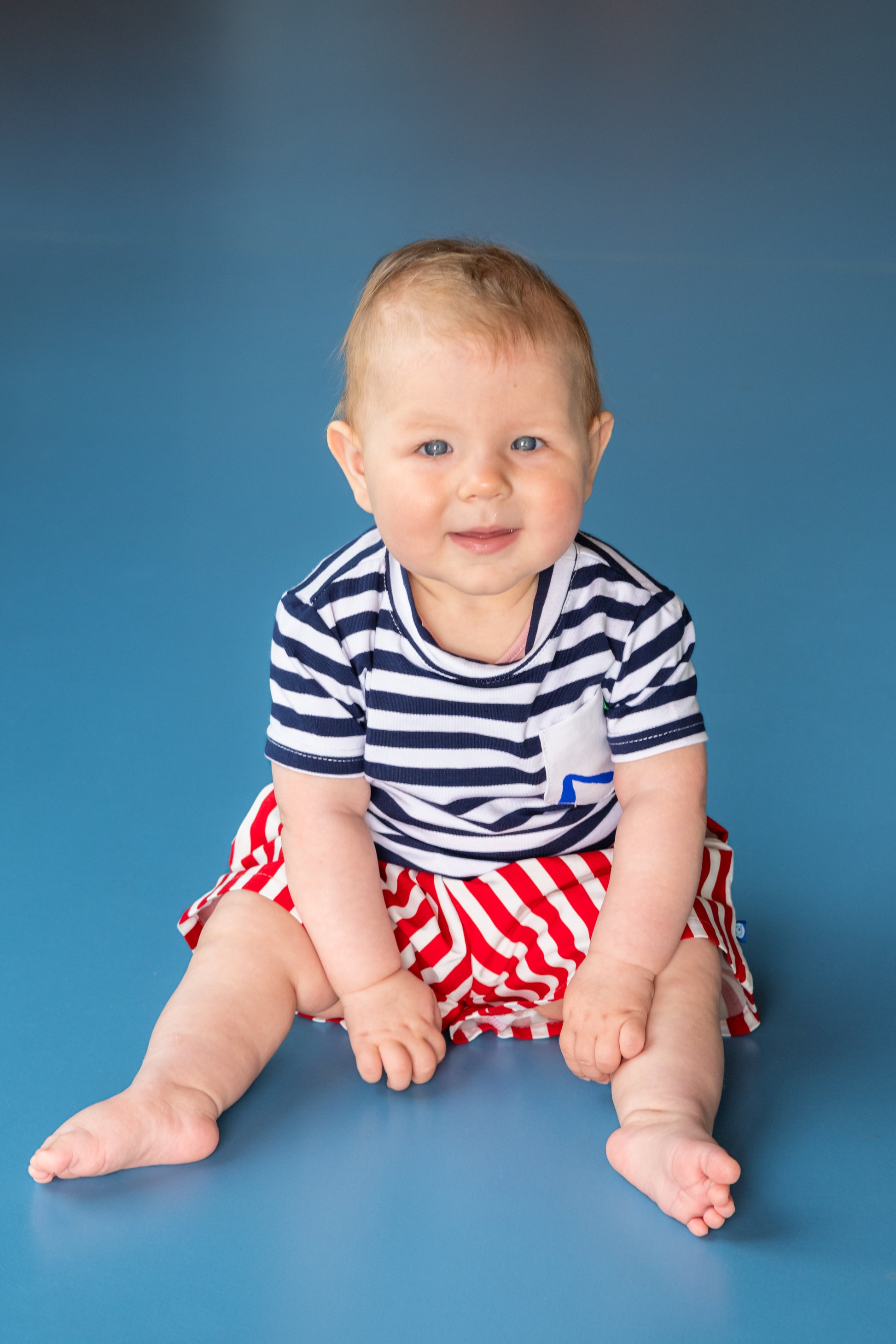 Das Baby- und Kinder-T-Shirt Belgrader Matrose bringt frischen Wind in die Garderobe der Kleinsten. Inspiriert von Wellen und Wind kombiniert es klassische Streifen mit einer farbenfrohen Brusttasche – jede ein handgemachtes Unikat wie ein kleines Kunstwerk.